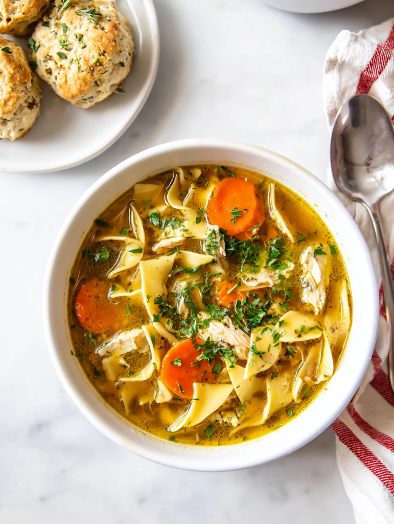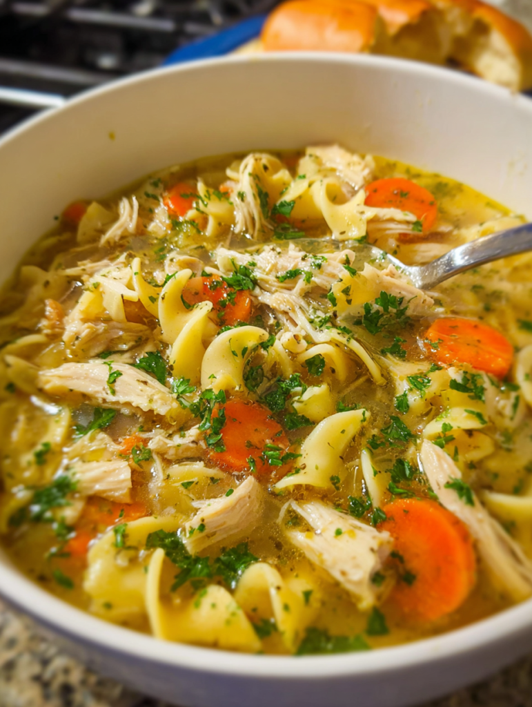 bowl of the best homemade chicken noodle soup! This easy recipe features tender chicken, flavorful broth, and perfectly cooked egg noodles for ultimate comfort.