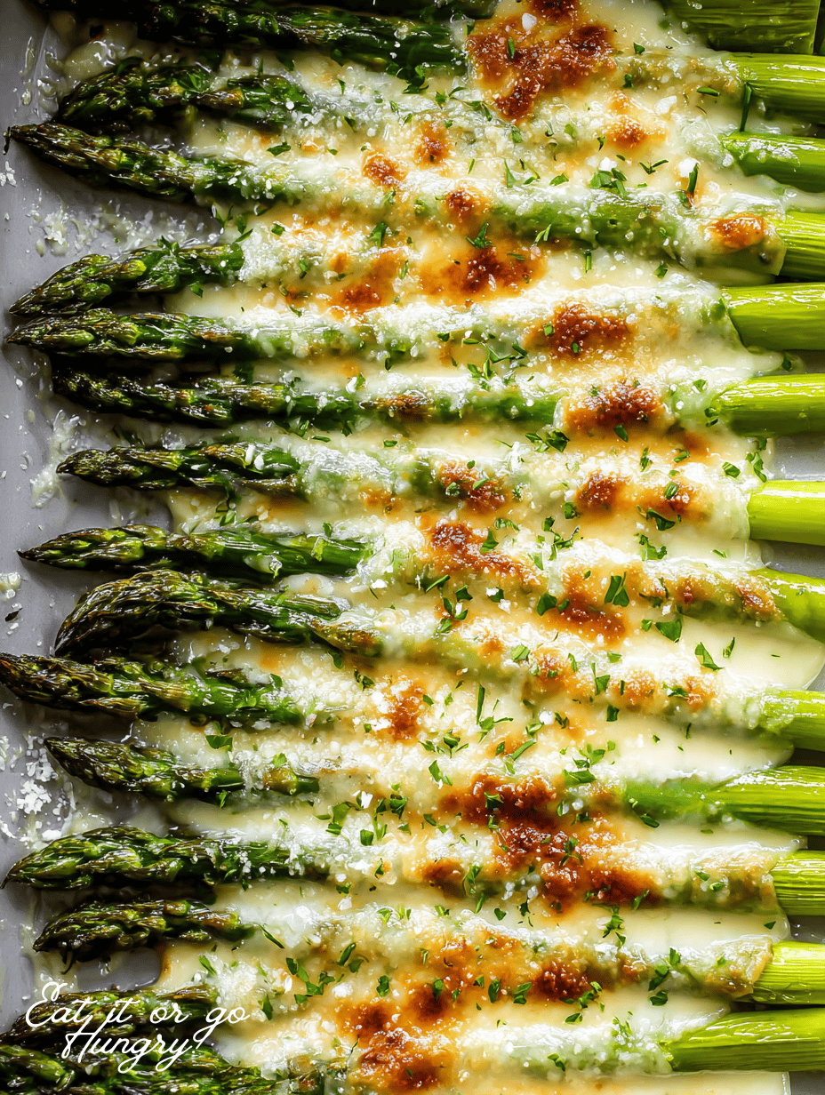 Bake for 15-20 minutes, or until the cheese is melted, bubbly, and lightly golden brown, and the asparagus is tender-crisp.Nutrition