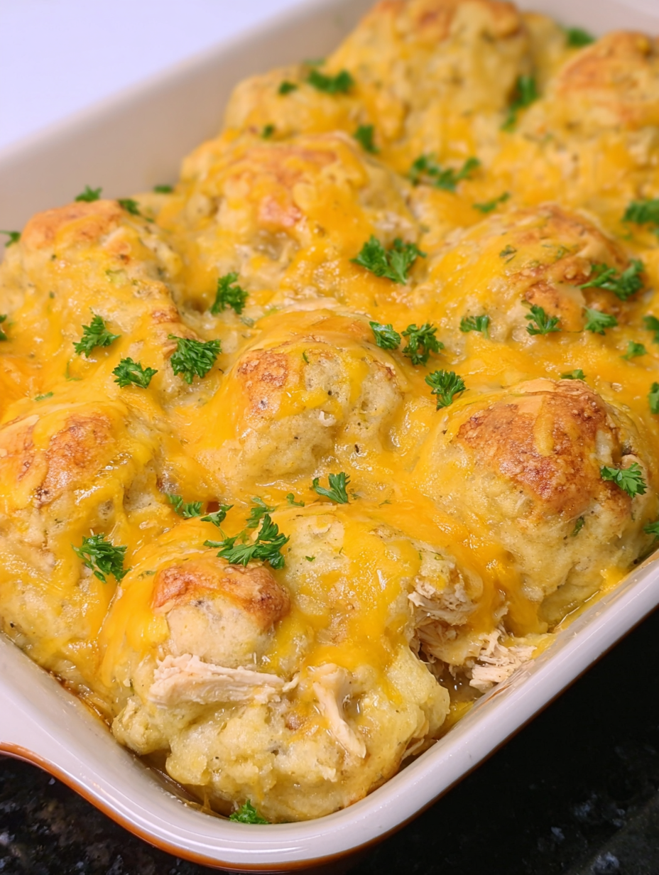 If you grew up loving creamy casseroles and fluffy biscuits, this is the kind of dinner that feels like a hug after a long day. It’s warm, it’s bubbly, it’s cheesy, and it’s the type of “everyone goes back for seconds” meal. The best part? You can toss it together in minutes, and the oven does the rest. Whether you’re feeding hungry kids, entertaining friends, or just craving comfort food, this Chicken Biscuit Bubble Up Bake delivers every time.
