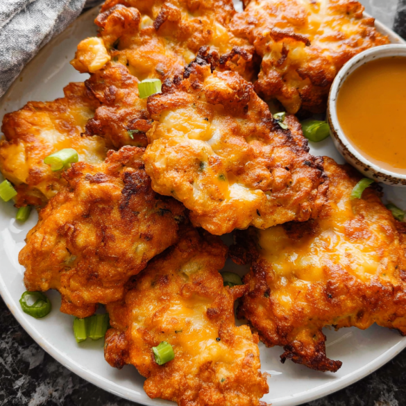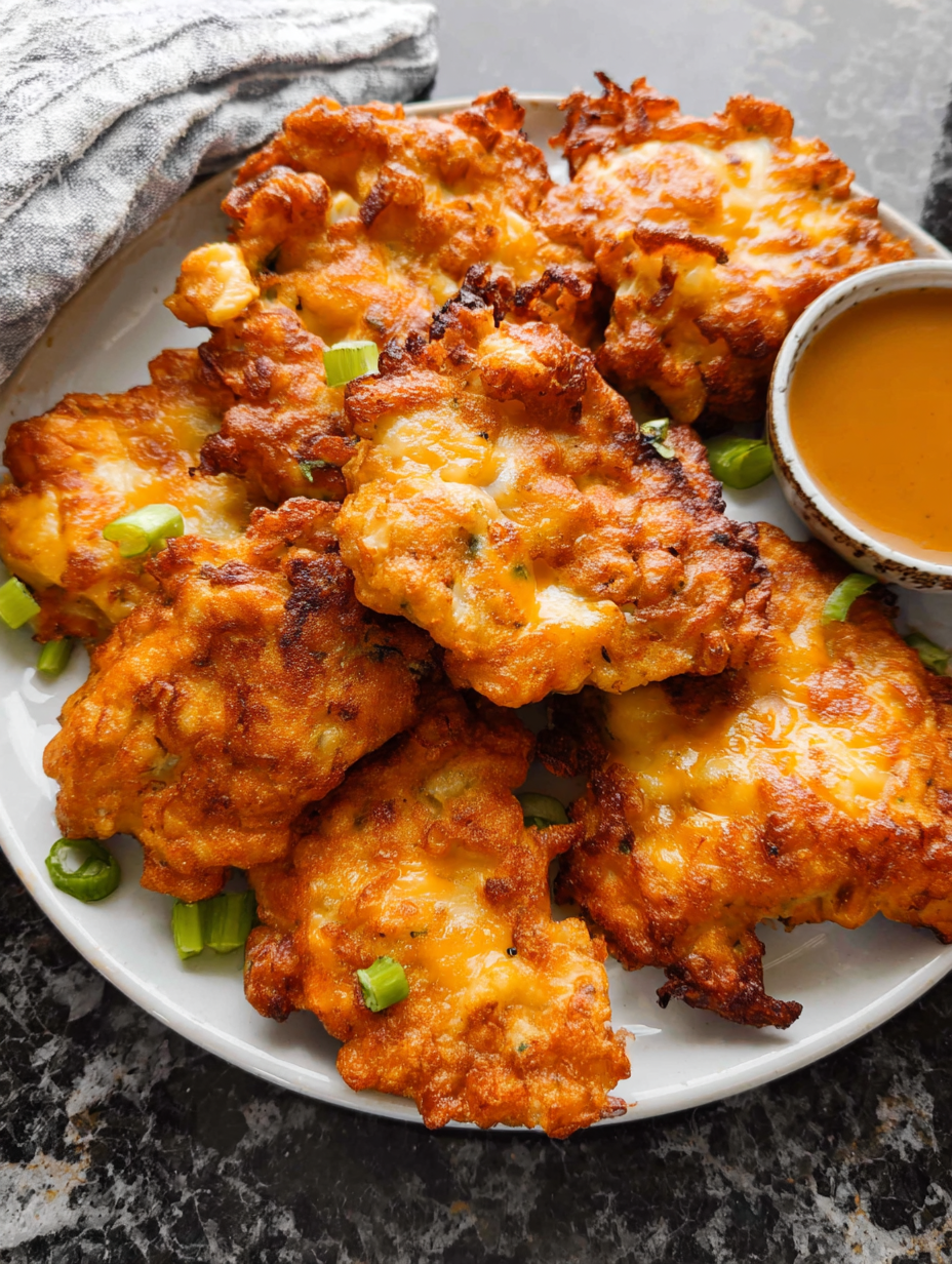 - Serving ideas: These fritters are amazing with ranch dressing, spicy mayo, or honey mustard on the side.