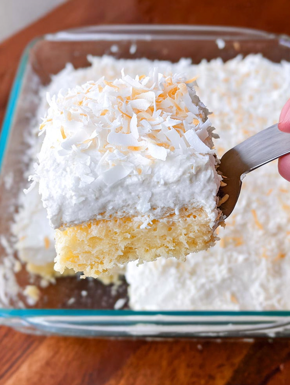 Allow the cake to cool completely at room temperature. This step lets the coconut cream soak deep into the cake, creating that dreamy, melt-in-your-mouth texture.