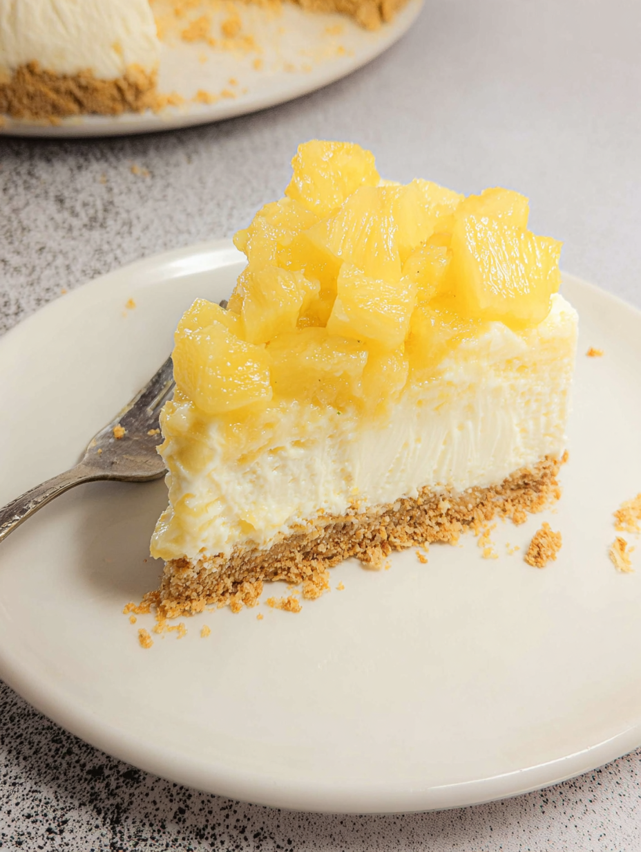 Once chilled, carefully release the cheesecake from the springform pan. Garnish with whipped cream, pineapple chunks, or toasted coconut for a picture-perfect finish. Slice and enjoy the tropical goodness!