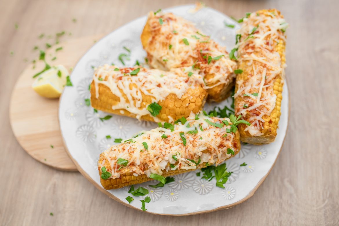 Grilled corn on the cob is a street food specialty in Mexico. You will find vendors on the streets of Mexican cities selling corn with different toppings. This recipe offers a traditional Mexican flavor that is a bit spicy, very cheesy, and quite fresh. You can make it yourself in just 15 minutes!