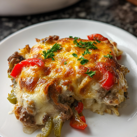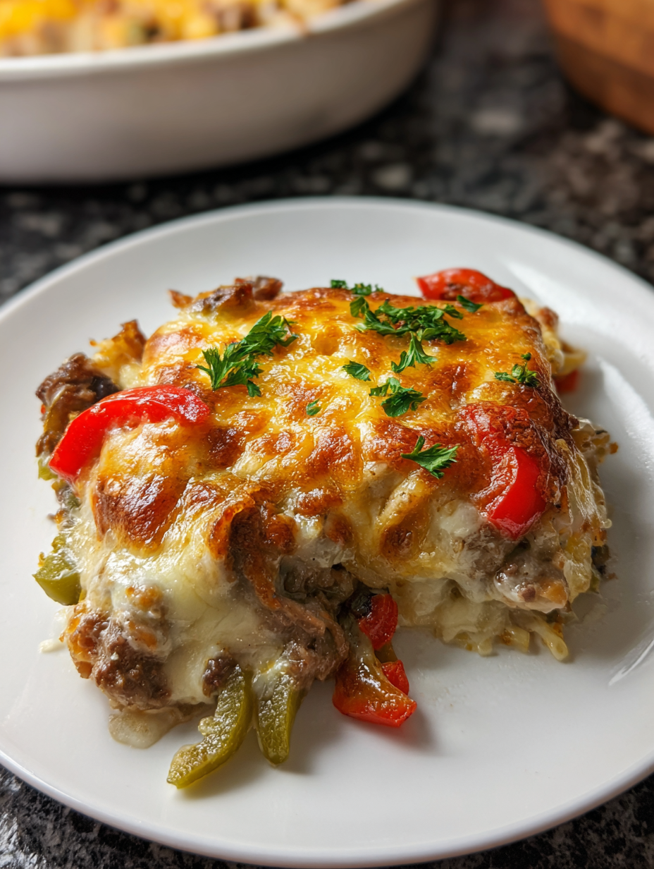 Craving a Philly Cheesesteak but want an easy, cheesy twist? This Philly Cheesesteak Casserole delivers all the flavor without the fuss! Imagine tender beef, savory veggies, and a blanket of melted cheese – all in one delicious dish. Get ready for a family favorite!