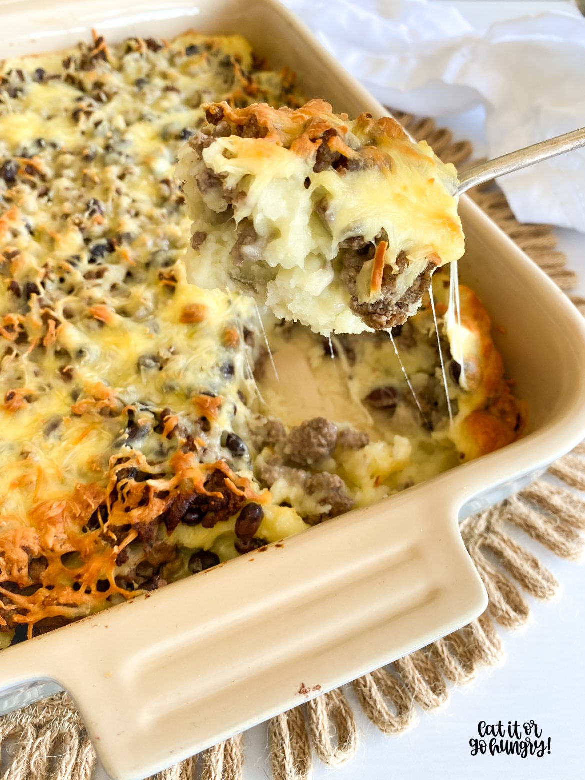 The beauty of this dish is that it’s absolutely universal. You can have a burrito casserole for dinner, use it as your comfort meal on a cozy day in, or serve it when you have guests over. The dish can be served with dips and tortilla chips as an entree or appetizer.