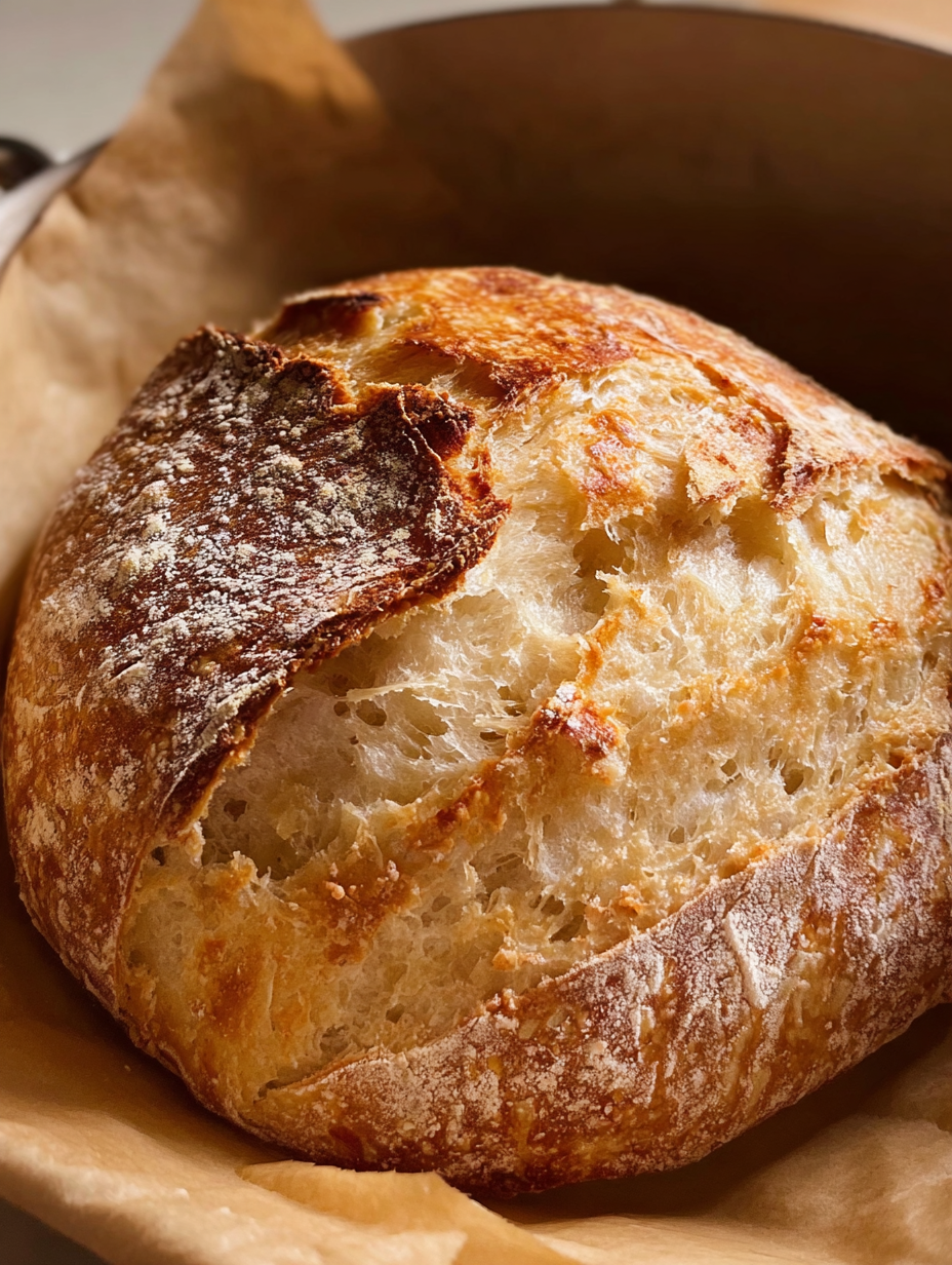 A Dutch oven is strongly recommended because it traps steam and improves oven spring.