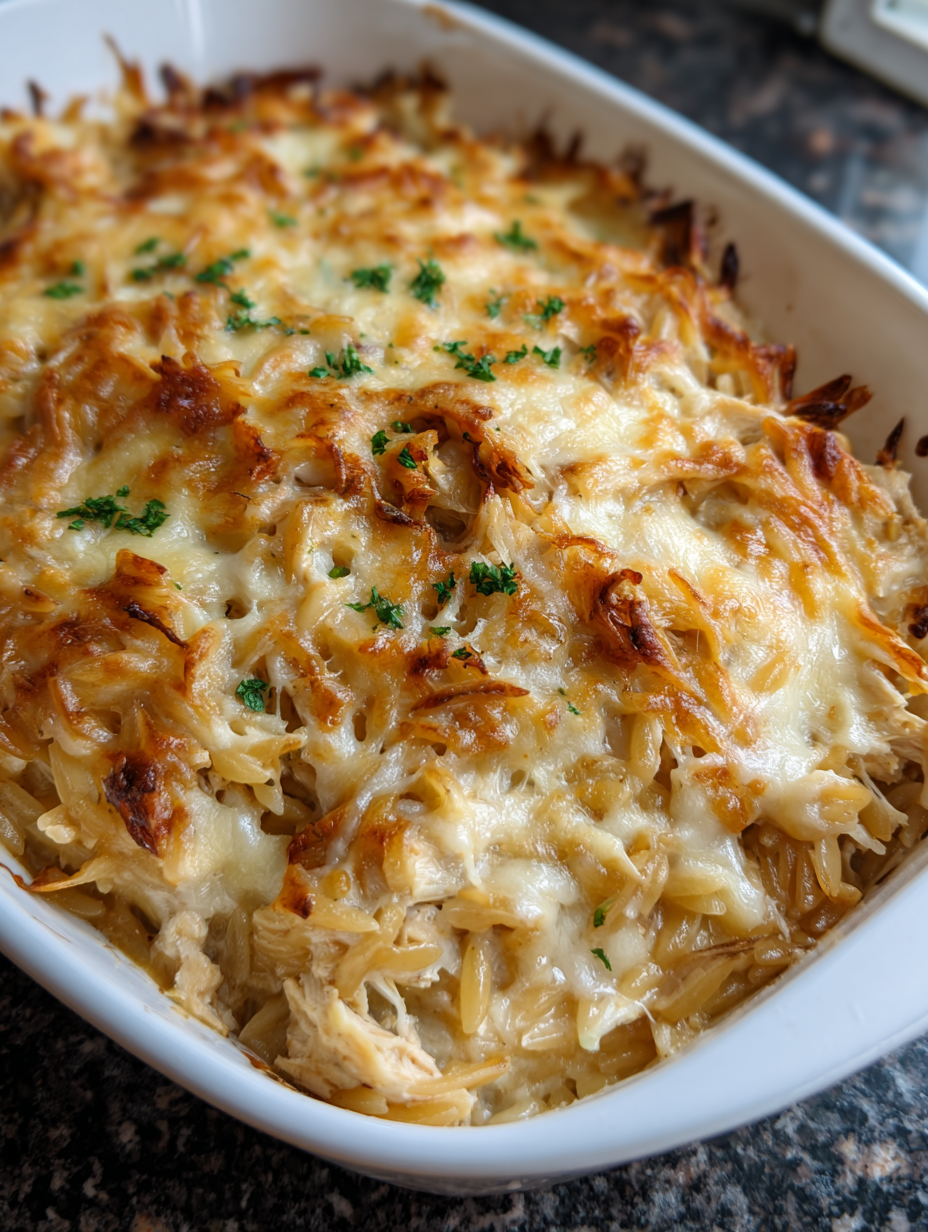 How to Make Creamy French Onion Chicken Orzo Casserole