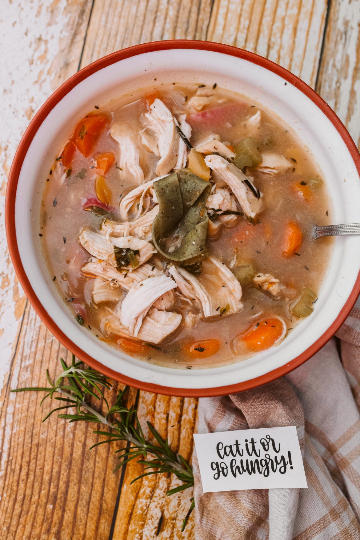 Chicken noodle soup is the ultimate comfort food. Ask literally anyone! You eat chicken noodle soup when you’re sick, when you miss your mom, and when it’s cold outside. Soup is like a warm hug from the inside. The only thing comparable is a steamy hot bubble bath.