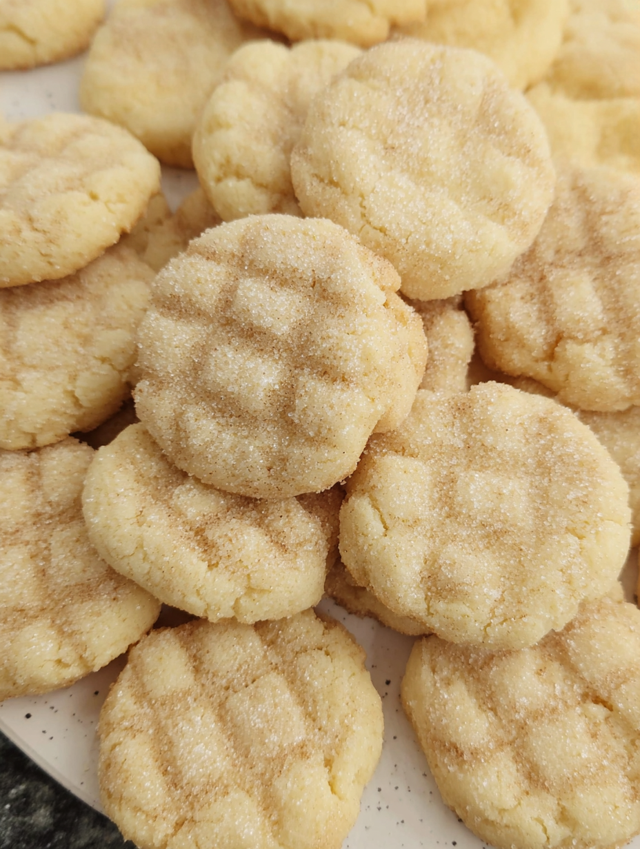 While the cookies are still warm, sprinkle the tops with the remaining granulated sugar. Allow them to cool completely before storing.