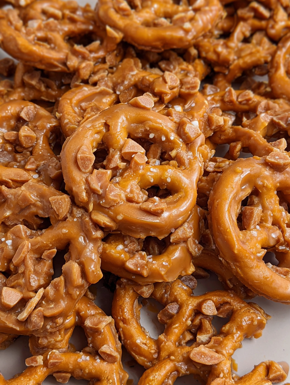 - Work Quickly: The toffee thickens fast, so stir and coat the pretzels right away.