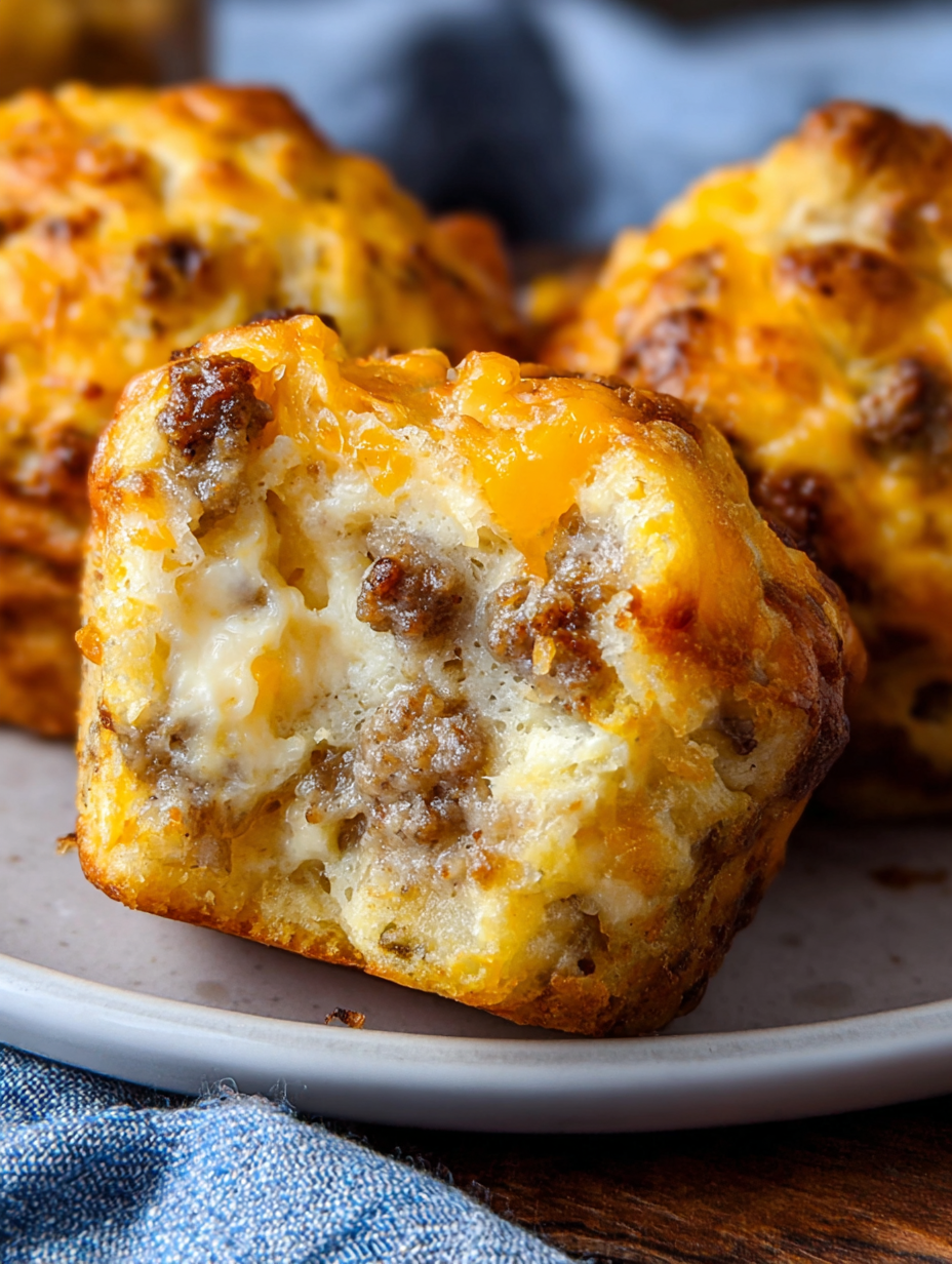 Mix gently once the sausage goes in, overmixing can make the muffins dense.