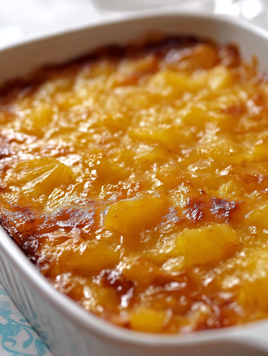 This Golden Pineapple Bake is one of those simple desserts that surprises everyone with how good it is. Sweet crushed pineapple bakes into a soft, custard-like filling while butter and cinnamon create a lightly golden topping. Even better, it comes together in minutes using pantry staples, making it perfect for busy weeknights, potlucks, or when you need an easy dessert that still feels special. Whether served warm or chilled, every bite is comforting, sweet, and full of tropical flavor.