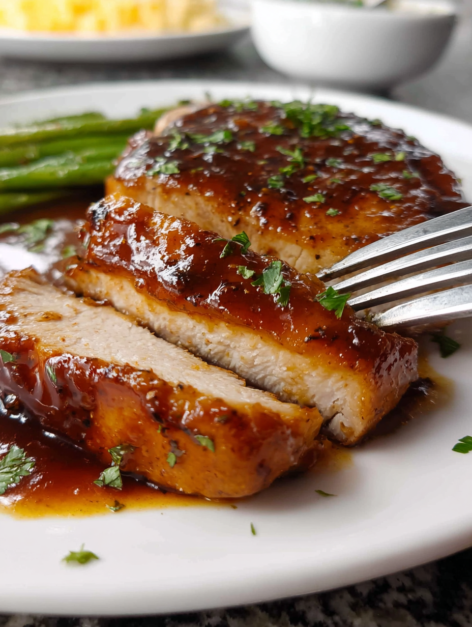 Contrary to popular belief, baking a good piece of meat for dinner is not hard. You don’t have to do much; just pop the pork chops in the oven and go on with your day. While the chops are in the oven, you have an hour to make the rest of dinner, and even enough time to spare for a yummy dessert!
