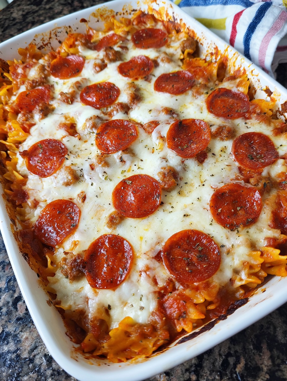 - Combines classic pizza flavors with comforting baked pasta