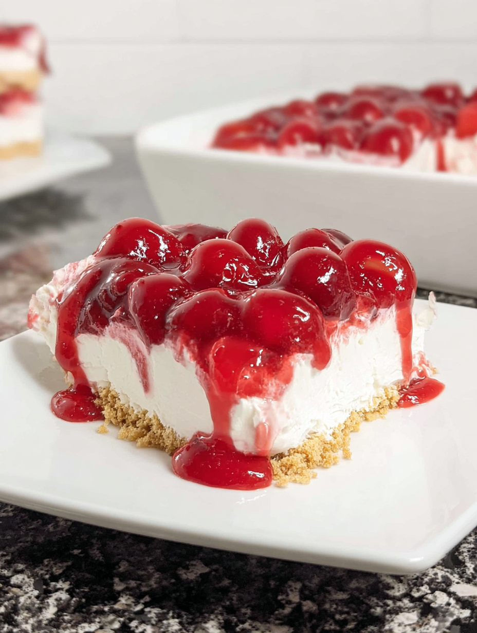 With a buttery graham cracker crust, a smooth cheesecake layer, and a glossy cherry topping, this dessert delivers pure comfort in every bite. Whether you’re hosting a holiday meal or just craving something sweet and simple, this no-bake cherry cheesecake delight never disappoints.